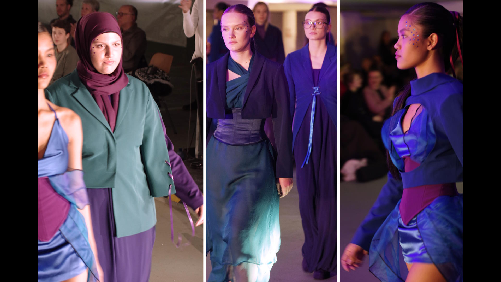 Verschiedene Sportdisziplinen und deren Spannungsfeld zwischen Funktion und Ästhetik sind Inspirationsquelle für die Modeentwürfe der Schülerinnen und Schüler. Dabei greifen die Schnittführungen der Silhouetten die Dynamik der unterschiedlichen Sportarten auf. Modekreationen zu sechs Bildern: Attitude - Ballett, Immerse - Schwimmsport, En Garde - Fechten, Avalanche - Wintersport, Knockout - Boxen, Hail Mary - Football und Balance of Performance - Motorsport, fantasievoll entworfen und selbstgeschneidert für eine Welt, die oft von Leistungsdruck und Schnelllebigkeit geprägt ist. Jeder Look erzählt eine Geschichte von Identität, Durchhaltevermögen und der Kraft, anders zu sein. Cooler Streetstyle, funktional, anpassungsfähig und komfortabel, erweitert den Blick auf traditionelle Dresscodes.