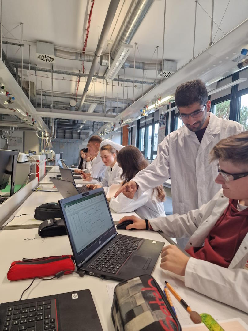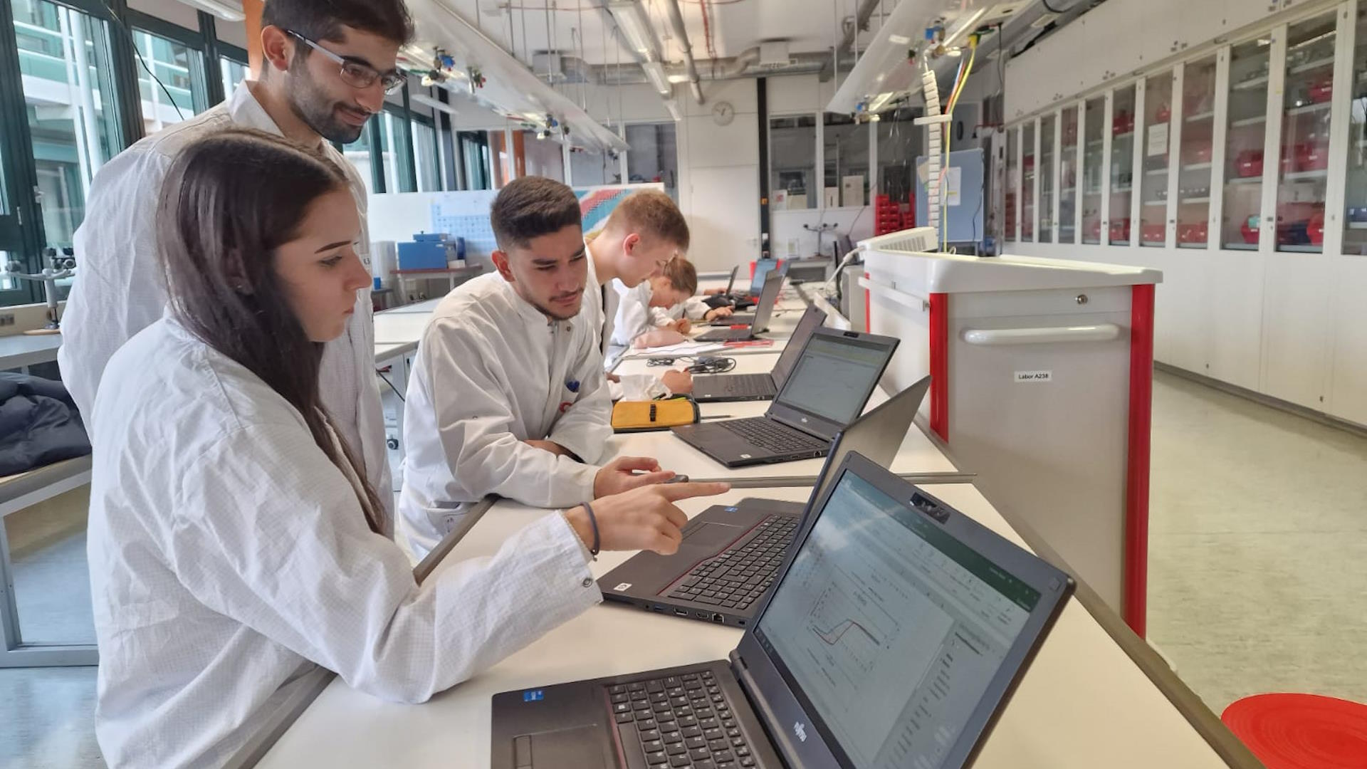 Die Auszubildenden dokumentieren ihre Laborversuche mit den Laptops, erfassen die Messwerte digital, werten diese am Laptop aus und erstellen die dazugehörigen Versuchsprotokolle unter Verwendung von berufsbezogener Software, die auch in den Betrieben verwendet wird. Die Laptops werden zur Literaturrecherche und zur Dokumentation von Projekten im Unterricht eingesetzt.