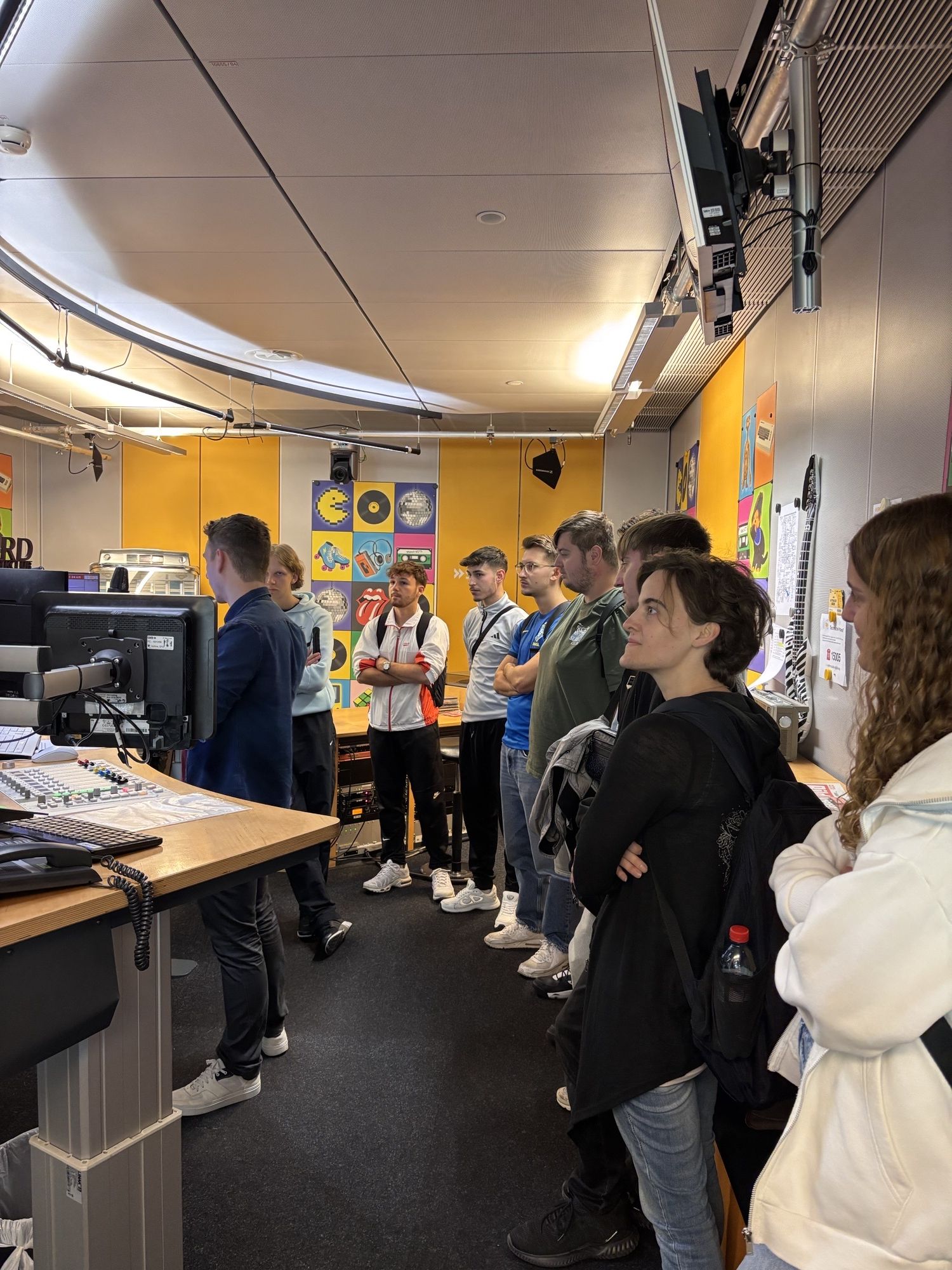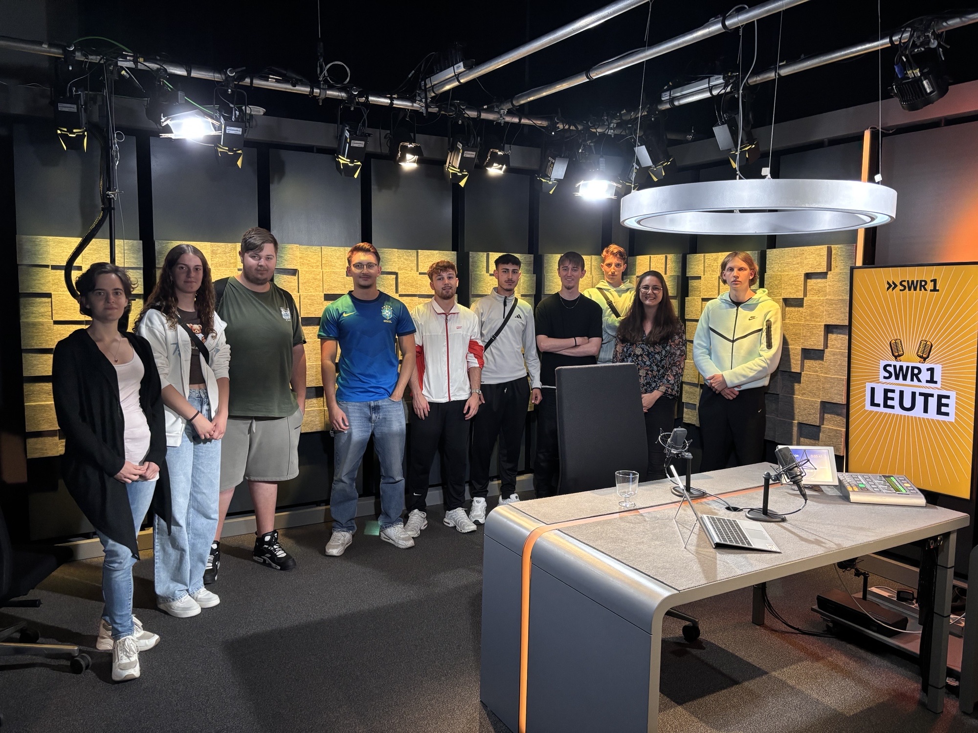 Ein weiteres Highlight war der spannende Blick hinter die Kulissen des SWR. Die Klasse erhielt exklusive Einblicke in die Arbeit beim Radio – insbesondere bei SWR1 – sowie in die Fernsehproduktion. Dabei wurde anschaulich erklärt, wie Beiträge entstehen, welche Rolle journalistische Standards spielen und wie sich öffentlich-rechtliche Sendeanstalten von anderen Medien unterscheiden. Der professionelle und gleichzeitig nahbare Umgang des SWR-Teams schuf eine offene Atmosphäre, in der viele Fragen gestellt und diskutiert werden konnten.