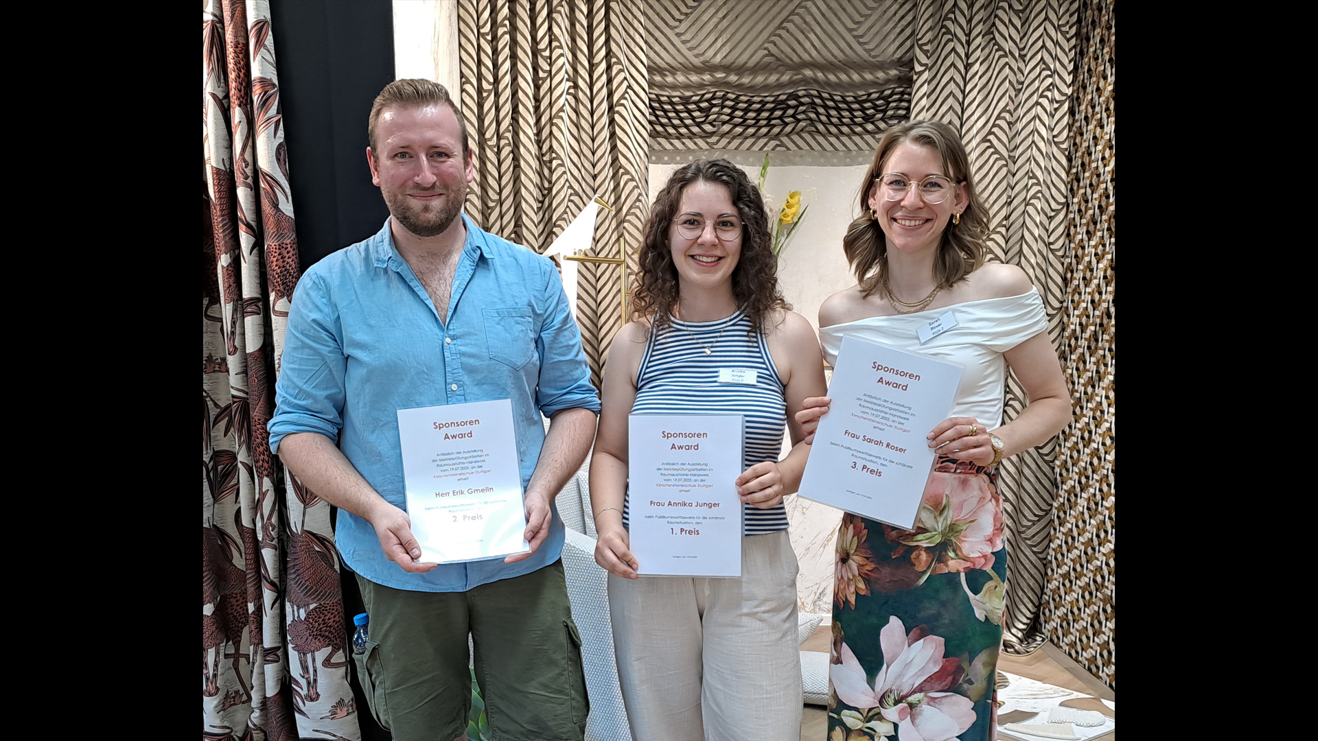 Die Besucherinnen und Besucher kürten auch dieses Jahr wieder mit dem Publikumspreis ihren Favoriten. Den 3. Platz belegte Sarah Roser aus Vaihingen mit ihrem Thema „Blühendes Barock“, den 2. Platz belegte Erik Gmelin aus Sinsheim mit seinem Herrenzimmer und den 1. Platz belegte Annika Junger aus Holzgerlingen mit „Ein Hauch von Lönneberga“.