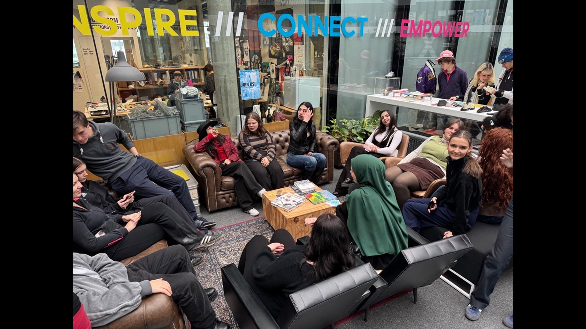Am zweiten Tag empfing uns Ronja um 10 Uhr erneut auf dem Adidas-Campus. Sie berichtete von ihrem spannenden Werdegang: Nach einem Designstudium in Antwerpen und Wien sowie Tätigkeiten bei Vivienne Westwood und als Freelancerin in London und Mailand arbeitet sie nun bei Adidas. Sie erzählte, dass sie ursprünglich nichts mit Sport zu tun hatte, und erklärte uns ihren Aufgabenbereich als Design- und Schnittmacherin – unter anderem verantwortlich für Adidas-Kooperationen wie mit Yohji Yamamoto.