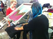 Gleich zweimal nahmen die Schülerinnen der 3MB des Berufskollegs für Mode und Design im November 2015 an einem Workshop teil, um unter professioneller Anleitung von Anja Bätzner die Technik des textilen Siebdrucks zu erlernen.